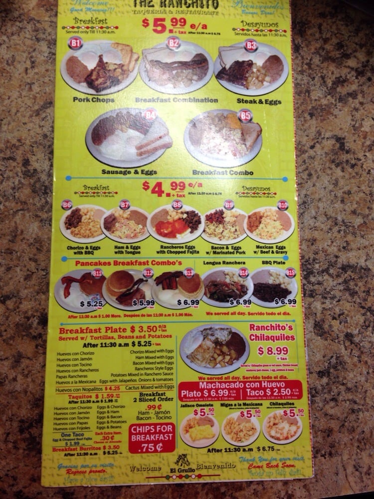 The Ranchito Menu (Update 2025)